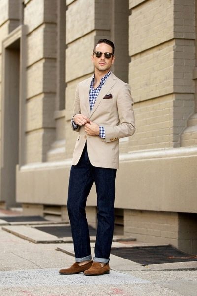 تبدو السترات الصيفية جيدة مع الموديلات الرياضية ، أحذية أوكسفورد ، أحذية بدون كعب ، ديربي ، أحذية بدون كعب ، أحذية إسبادريل ، أحذية بروغ ، أحذية بدون كعب.