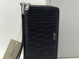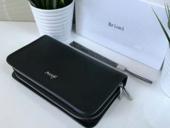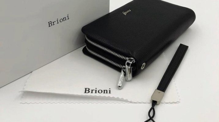 تحظى محافظ Brioni ذات العلامات التجارية بشعبية كبيرة اليوم ، بعد هيكل مستطيل. هذه المنتجات فسيحة للغاية. لديهم العديد من المقصورات حيث يمكنك تخزين البطاقات المصرفية وبطاقات العمل والأوراق النقدية.
