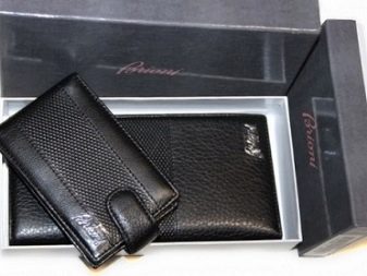 لا تقدم العلامة التجارية الإيطالية محافظًا فردية للرجال فحسب ، بل تقدم أيضًا مجموعات كاملة من إكسسوارات الرجال. على سبيل المثال ، المجموعات التي تتكون من محفظة وحافظة عملة شائعة. كلا المنتجين مصنوعان بنفس الأسلوب واللون. معروضة للبيع هناك نماذج من الجلد المحبب الأملس وغير اللامع.