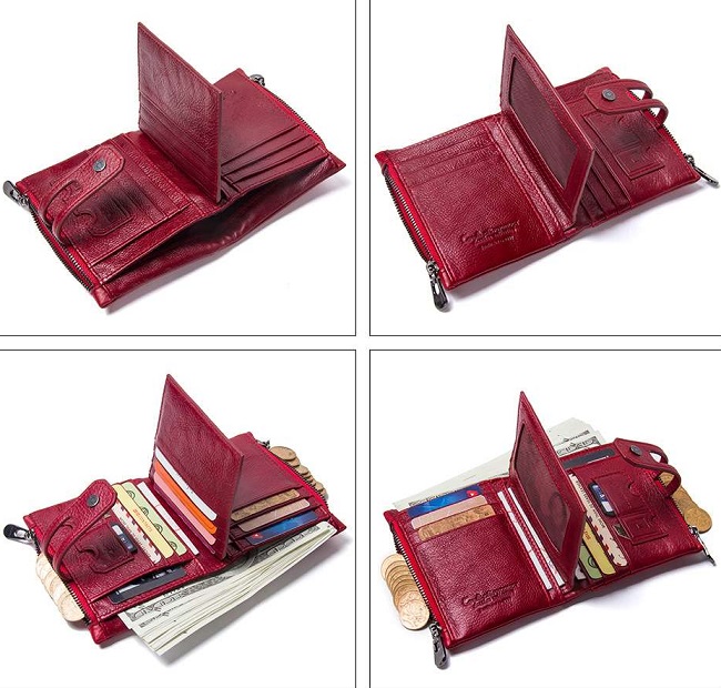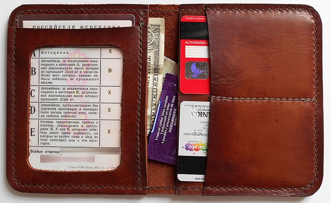 في الآونة الأخيرة ، بدأت المزيد والمزيد من النسخ في الظهور للبيع ، والتي تطوى 3-4 مرات. لن يجدي وضع النقود في مثل هذه الحقيبة مع حجرة لتخزين الحقوق. هنا يتم التركيز على البطاقات.