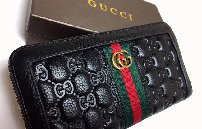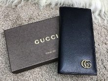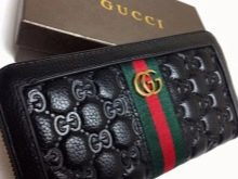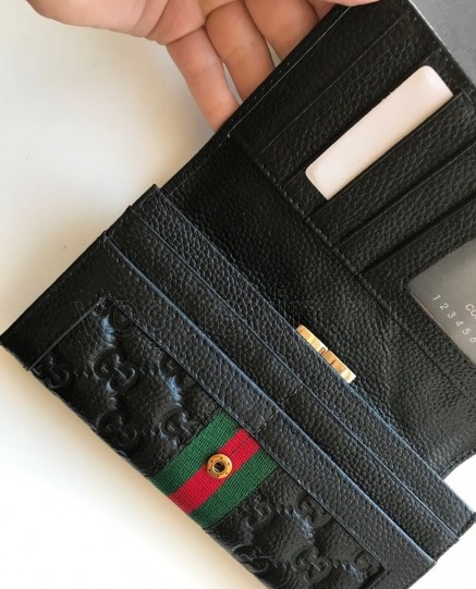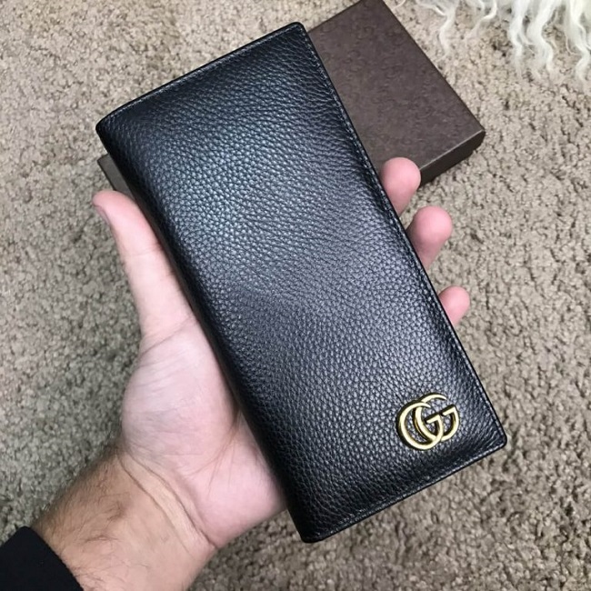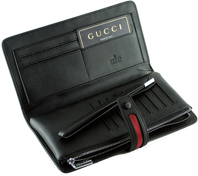 تنتج Gucci مجموعة متنوعة من المحافظ عالية الجودة في مجموعة متنوعة من التصاميم. تبدو المنتجات البسيطة المصنوعة من الجلد الأصلي صلبة وجذابة. البطانة الداخلية مصنوعة عادة من البوليستر غير المكلف. عناصر مشهورة جدًا ، يكملها الشعار القديم للعلامة التجارية.