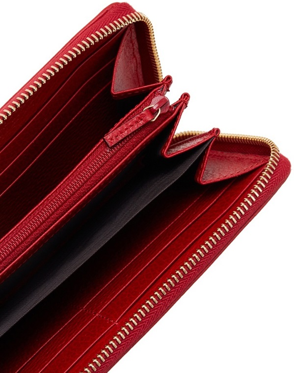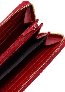 لا تشمل تشكيلة العلامة التجارية الإيطالية نماذج المحافظ والمحافظ باللونين الأسود والرمادي والبني فحسب ، بل تشمل أيضًا منتجات أكثر إشراقًا بلون أحمر غني. إذا كنت ترغب في إضافة تفاصيل مشرقة إلى مظهرك ، فعليك إلقاء نظرة فاحصة على هذه المحفظة الأصلية المصنوعة من الجلد المحبب غير اللامع. في الجزء الأمامي من الملحق ، توجد المطبوعات التقليدية لشعارات العلامة التجارية ، كما هو الحال في منتجات الثمانينيات.