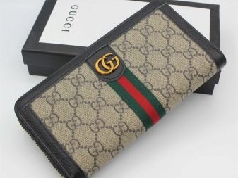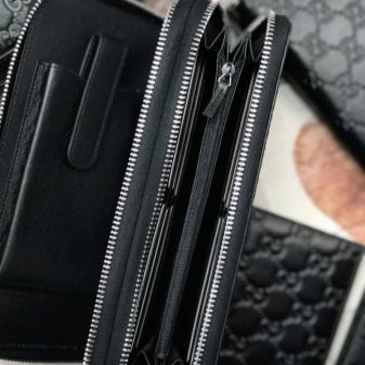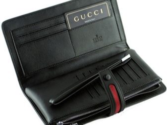 أكثر المحافظ شعبية هي تصميمات سوداء وغير ملحوظة. يبدو شعار ماركة Gucci أنيقًا وأنيقًا على الخلفية المظلمة للمنتج. تتناسب هذه الملحقات بسهولة مع معظم الأشكال الممكنة ، لأنها سرية ، لكنها جذابة ، وخالية من الزخرفة المفرطة و "النقاط المضيئة".