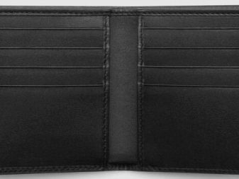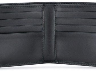 إذا كنت ترغب في شراء ملحق أصلي للرجال ، فيمكنك إلقاء نظرة فاحصة على المحافظ المبطنة ذات العلامات التجارية ، مع استكمال حرف واحد فقط غير عادي. يستخدم جلد العجل الطبيعي كمادة خارجية. اللون الكلاسيكي لهذا المنتج أسود.توجد عدة فتحات منفصلة للفواتير والبطاقات داخل المحفظة. هناك نوعان من الجيوب المفتوحة. لا توجد مقصورة منفصلة على السحابة للأشياء الصغيرة.
