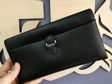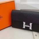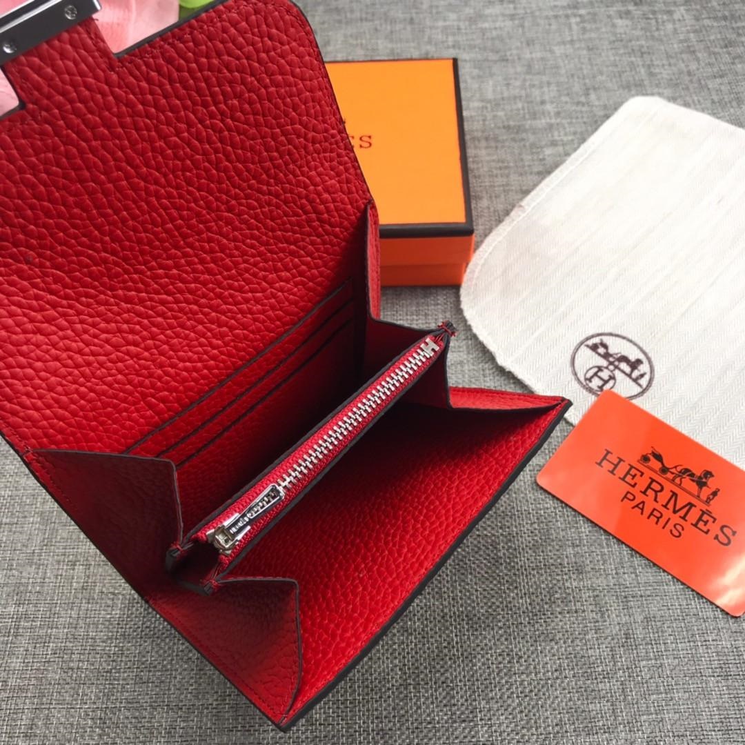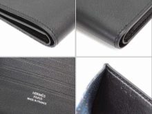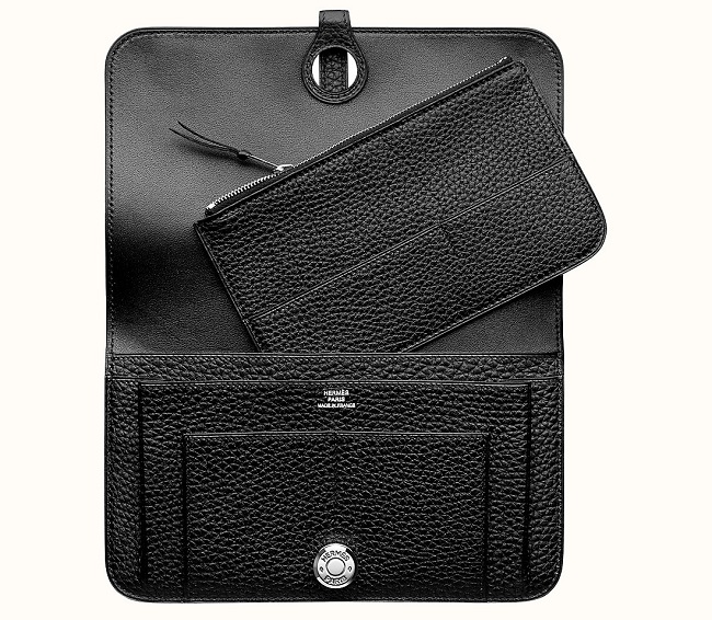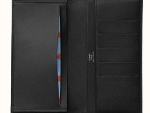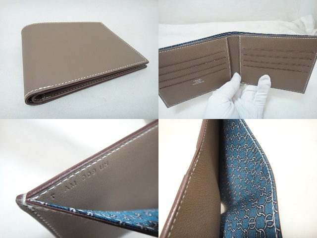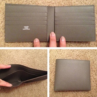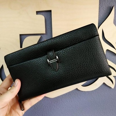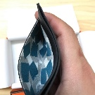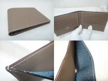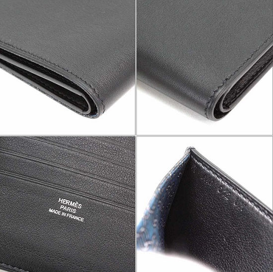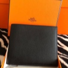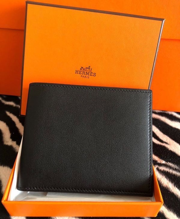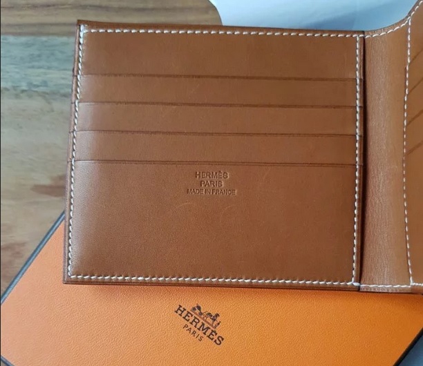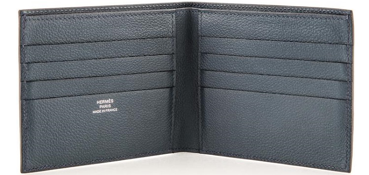 يوجد نوعان من المشبك للمنتجات الأصلية: الحرف H أو زر معدني مستدير عليه اسم علامة تجارية محفور. جلد المحفظة ناعم للغاية ولطيف ، ومن السهل الضغط عليه والعودة بسرعة إلى مظهره الأصلي دون ترك أي خدوش. تقدم Hermes محافظ رجالية أحادية اللون حصريًا ، بدون ملاحق ملونة.