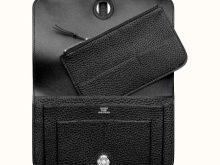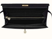 هناك نماذج فيها فقط حزام جلدي بمثابة قفل... كما تم نقش الزر الذي يثبت جيب العملة. تشتمل تشكيلة العلامة التجارية على محافظ تغلق بحزام ، ويتم إدخالها في سدادة معدنية دائرية صغيرة.