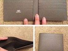 انتبه إلى اللحامات أيضًا. هم بالضرورة مستقيمة ، مصنوعة من خيوط بيضاء سميكة وتميل إلى جانب واحد. حواف المقاطع مغطاة بورنيش خاص يزيل جميع المخالفات والكسور. محافظ الرجال الخاصة بالعلامة التجارية معبأة في علبة برتقالية عليها شعار الشركة. داخل المحفظة ملفوفة بورق ذو علامة تجارية. سيكون المؤشر الرئيسي للأصالة هو رقم المنتج ، والذي يوجد عادةً في الجزء العلوي من الجيب الداخلي. إن وجود هذا النقش هو الذي يضمن أن هذه محفظة هيرميس حقيقية. إذا كنت تشك في قدراتك الخاصة ، فخذ المنتج إلى المتجر ، وسيفهم البائعون ذوو الخبرة على الفور ما إذا كانت النسخة أمامهم أم لا.