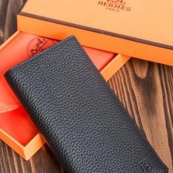 تحتل محافظ هيرمس الرجالية مكانة خاصة في تشكيلة الشركة. لقد كانوا من أكثر الكتب مبيعًا لسنوات عديدة ، على الرغم من أنهم يكلفون أكثر من 1000 دولار في بعض الأحيان. الميزة الرئيسية للمحافظ هي المواد - جلد العجل الطبيعي أو التمساح أو جلد النعام. تمتلك العلامة التجارية مصانع تربية الحيوانات الخاصة بها لمنتجاتها. الإكسسوارات ذات صنعة عالية الجودة ، فهي ناعمة الملمس وتجلس بشكل مريح في اليد.