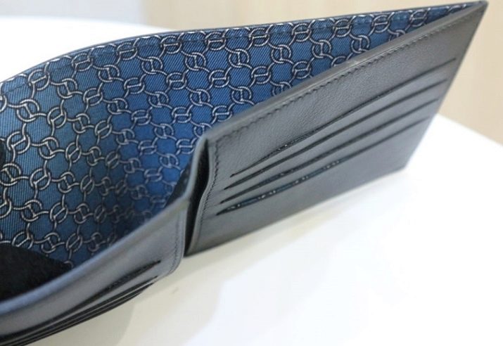 الملحقات مصنوعة بأسلوب أضيق الحدود... لا تحتوي محافظ الرجال على عناصر زخرفية ، فهي مقتضبة ومصقولة. تحتوي كل محفظة على مقصورة للبطاقات البلاستيكية بالداخل. كقاعدة عامة ، هناك 8 مقصورات مصنوعة من الجلد الطبيعي. هناك منتجات بها 5 أو حتى 12 فتحة ، حسب حجم المحفظة.تم تجهيز الموديلات الصغيرة بجيب جلدي قابل للفصل مع سحاب لتخزين العملات المعدنية.