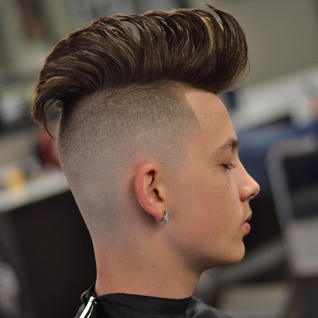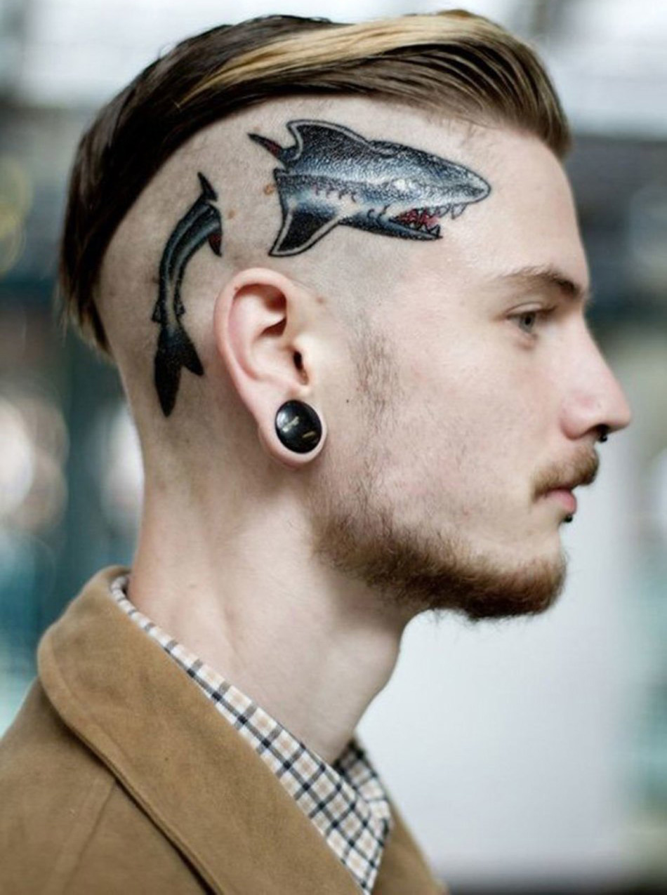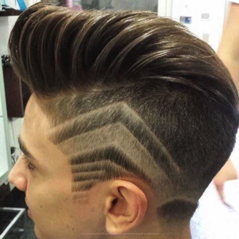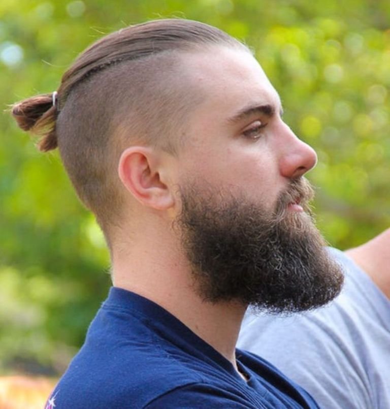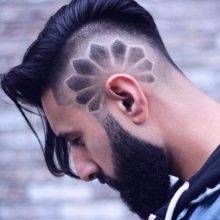 تبدو تصفيفة الشعر هذه متناغمة للغاية مع الانفجارات الضخمة والطويلة ، والرأس المحلوق مزين بالوشم أو بنمط أصلي.