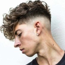 لا يمثل الشعر المجعد أو المموج عقبة إذا كنت ترغب في استخدام الجزء السفلي بمظهر أنيق. كما ترى ، فإن المعابد في معظم الحالات تشكل انتقالًا سلسًا إلى التاج ، ولا يتم حلقها بشكل أصلع. يتم توفير التباين في هذه الحالة من خلال نسيج الشعر ذاته.