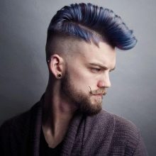 - الموهوك - نسخة غامضة من تصفيفة الشعر للرجال الأكثر جرأة وغير المقيدين. في هذه الحالة ، يتم تطبيق المنتج على الشعر في اتجاه كلا الفص الصدغي. في الوقت نفسه ، يتم تشكيل نوع من المشط من الشعر الرأسي على الرأس ، وهو مثبت بالورنيش.