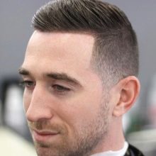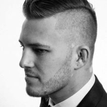 - اختصار أو عسكري. مناسب للرجال الأنيقين الذين يفضلون قضاء ما لا يزيد عن 5-10 دقائق في اليوم في تصفيف شعرهم. يتميز بنفس طول الشعر تقريبًا من جميع جوانب الرأس. وعادة ما يتم حلق الصدغين بالكامل وظهر الرأس وكذلك الشعر الممدود عند التاج.