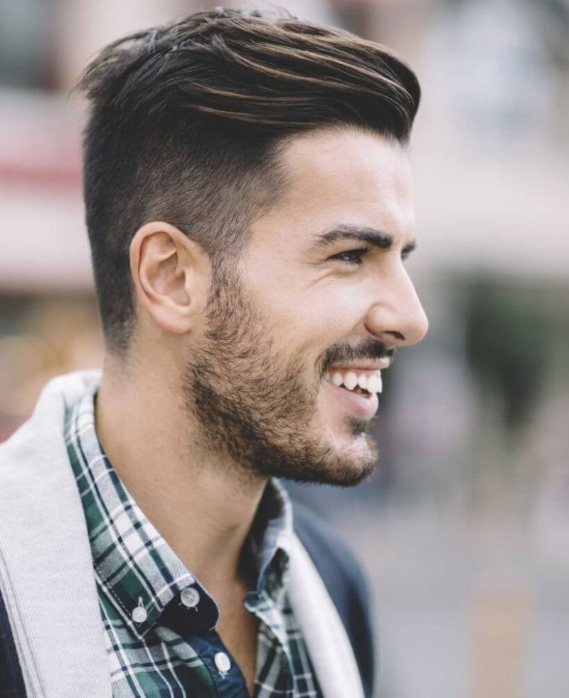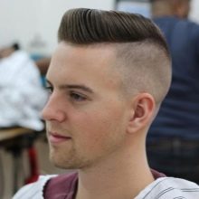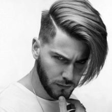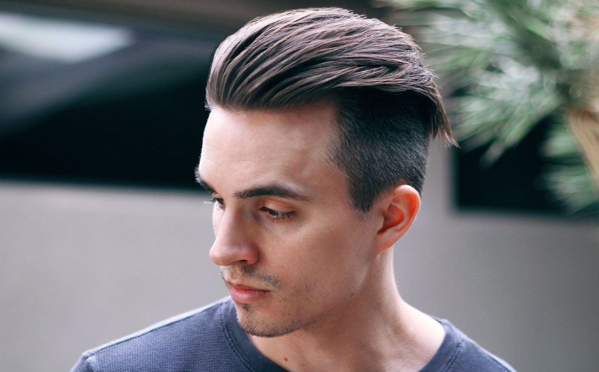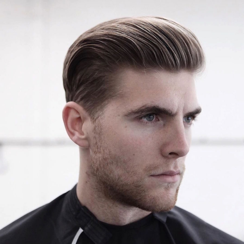 - على الجانب. يتضمن خيار الحلاقة هذا المعابد الحلقية الكلاسيكية والشعر الممدود عند التاج ، ممشطًا إلى الجانب الأيسر أو الأيمن من الرأس.