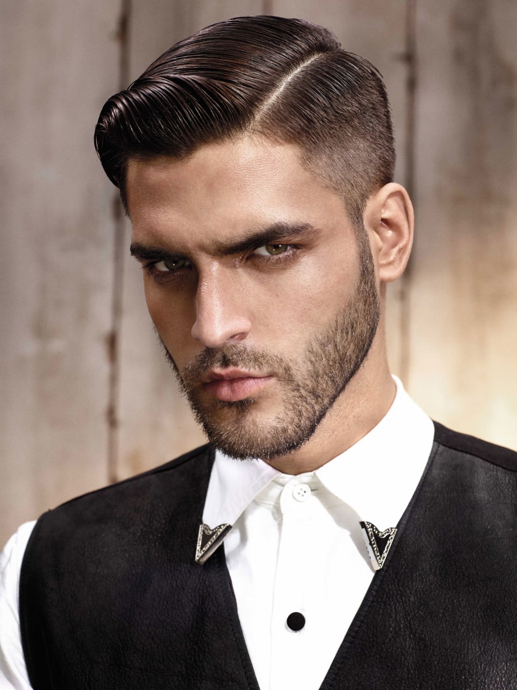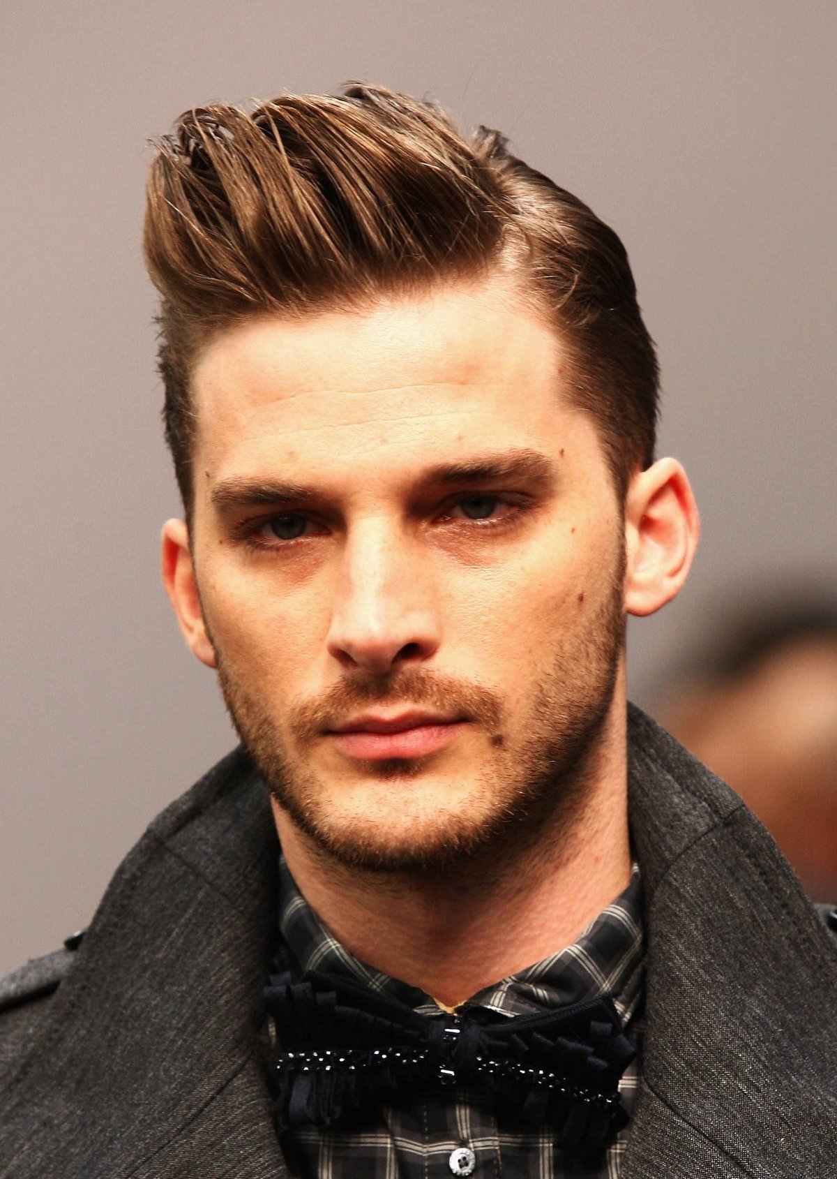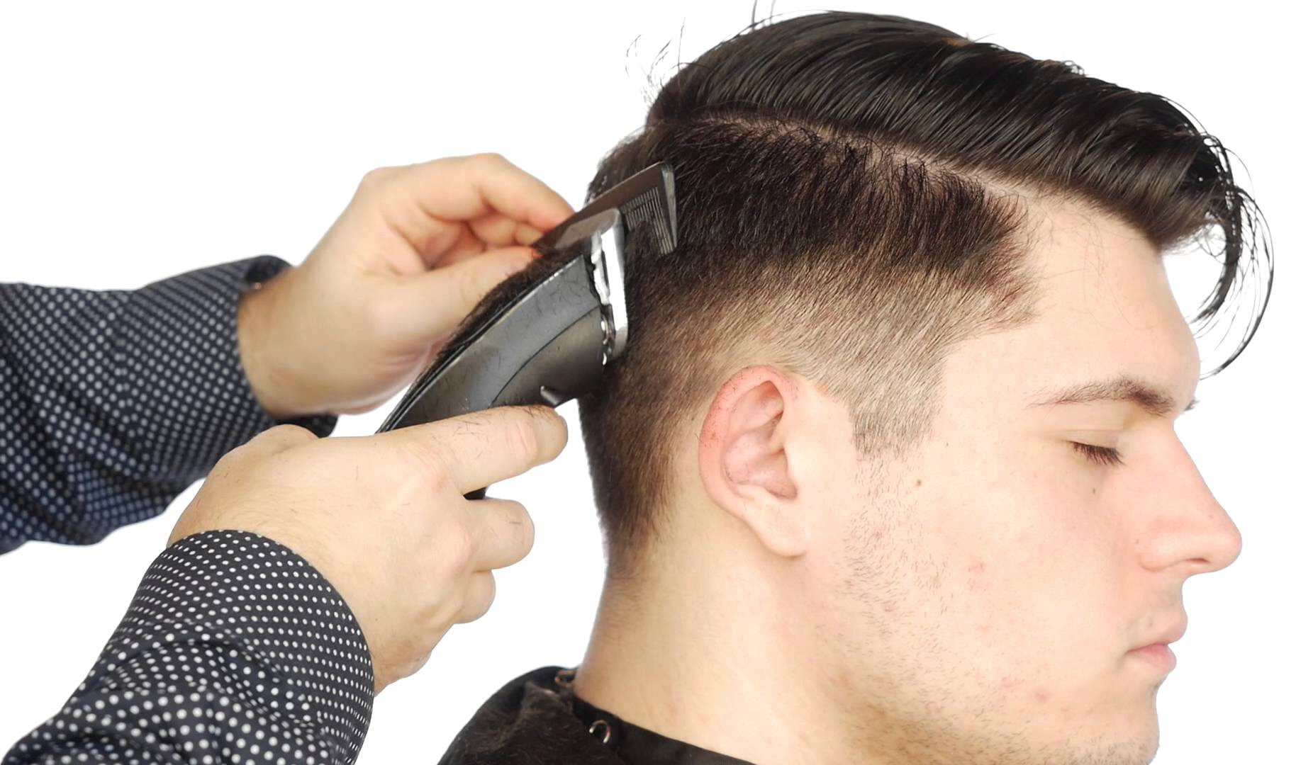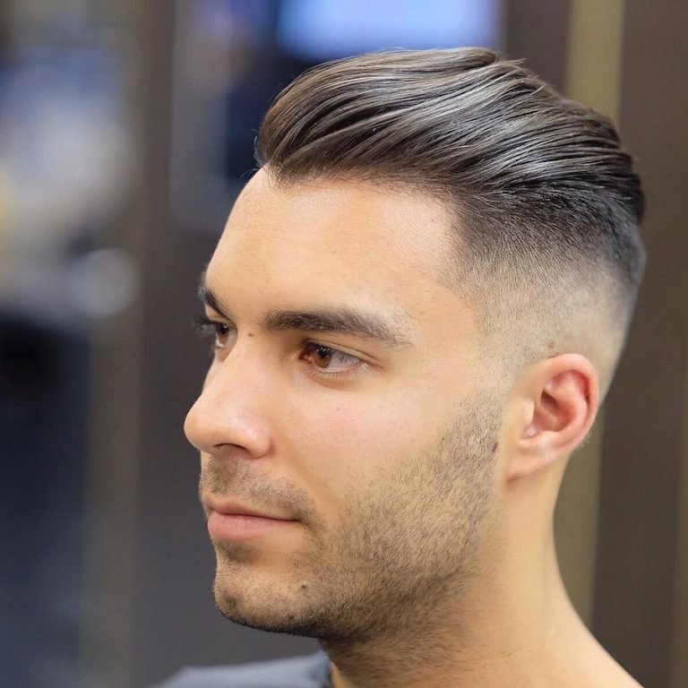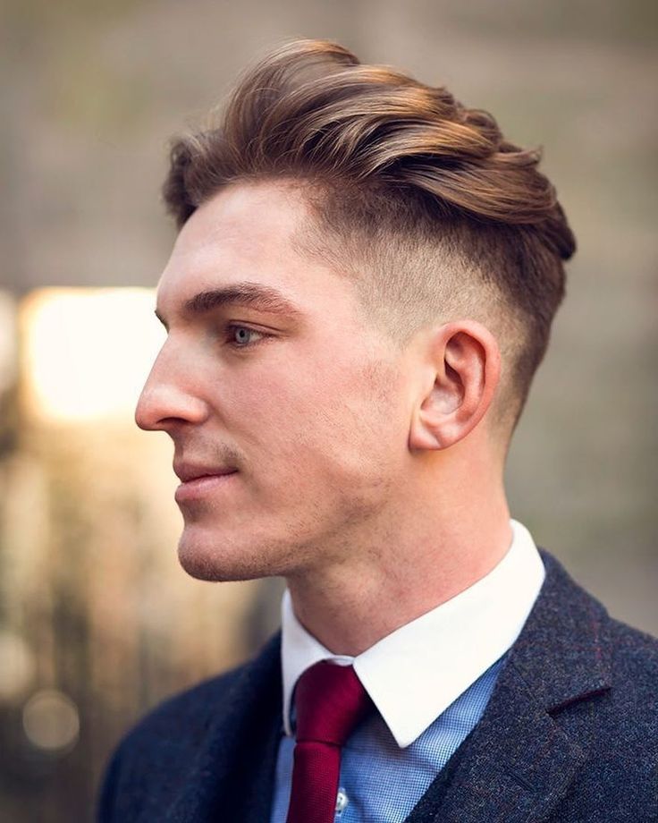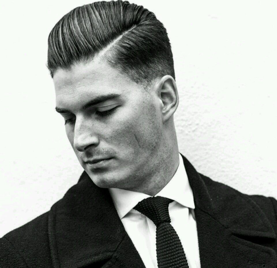 مثال على قص شعر متوسط كلاسيكي. العلامات الواضحة لمثل هذا الحلاقة هي المعابد القصيرة جدًا أو الحلقية والشعر المائل للخلف أو الجانب.