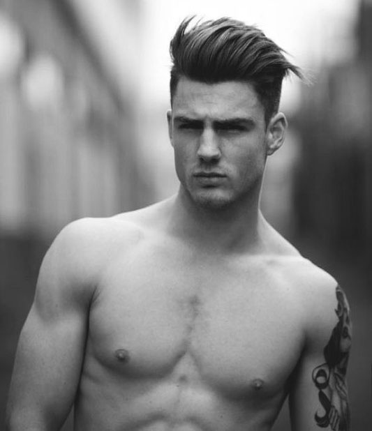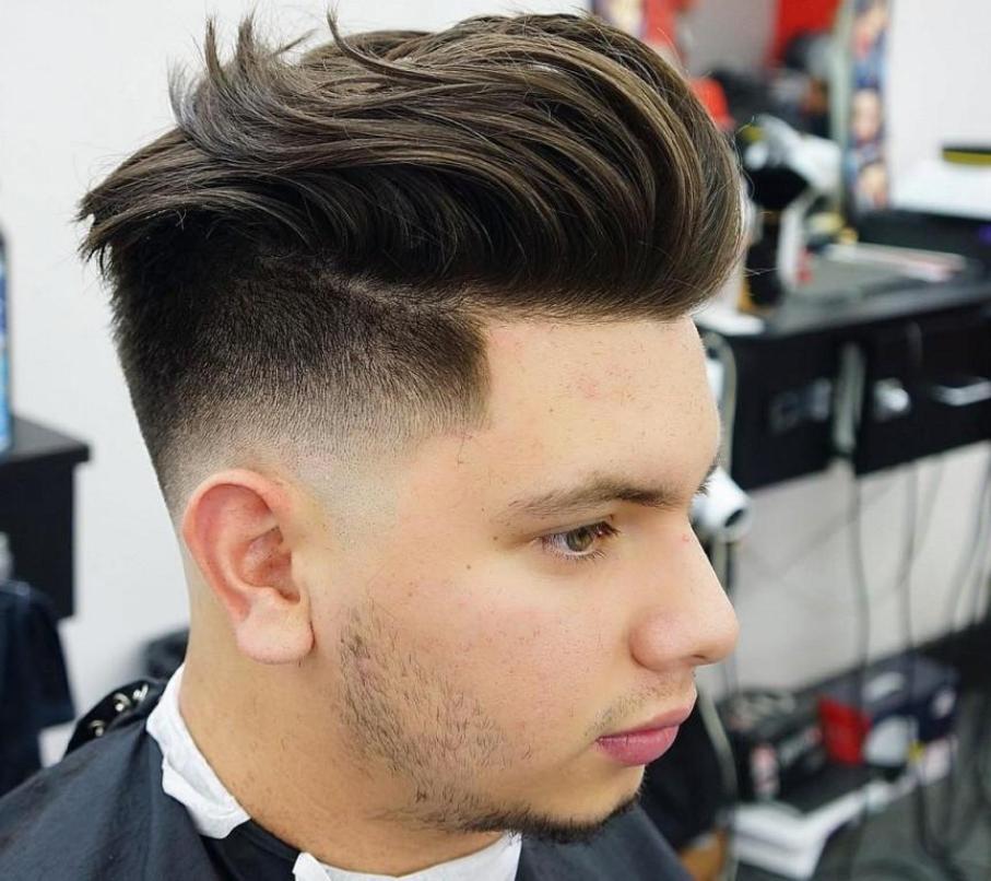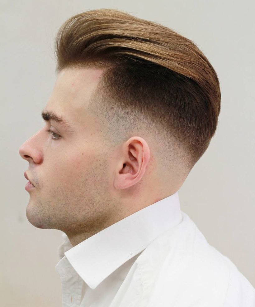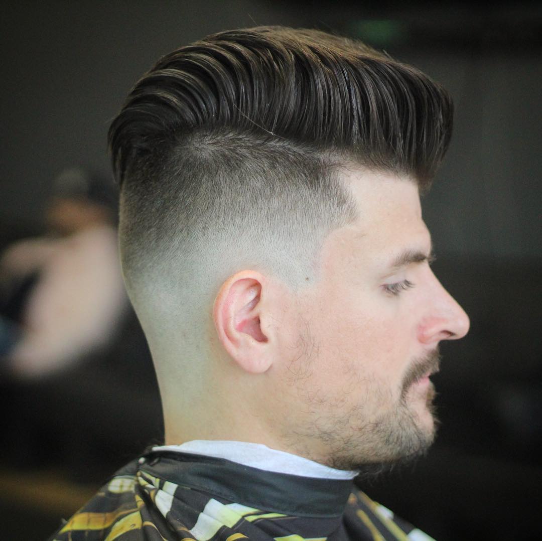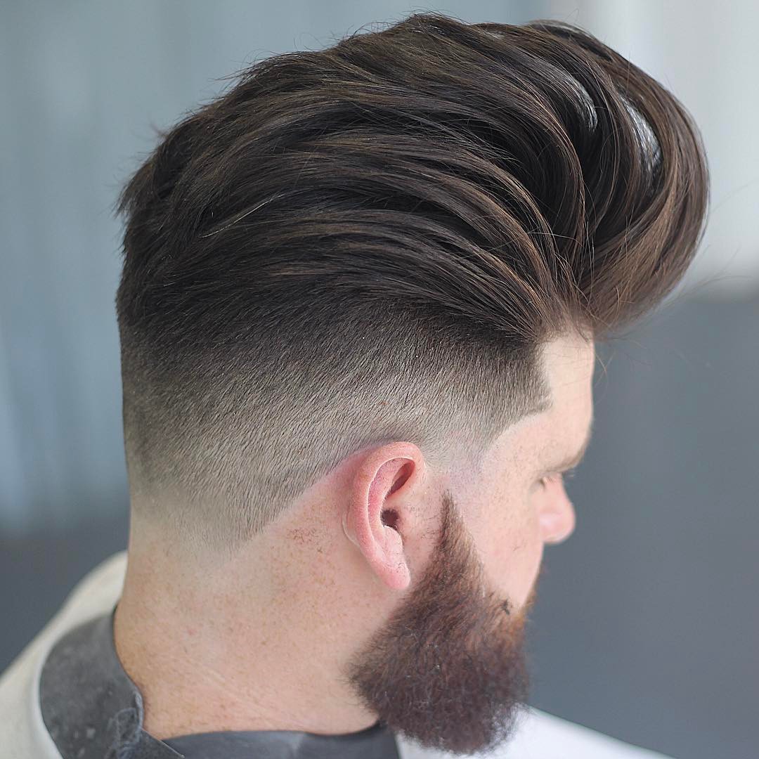 - شعر طويل أو بومبادور. خيار رائع للرجال الذين لا يريدون الانفصال بشعر طويل عن التاج.في أغلب الأحيان ، يتضمن بومبادور الصدغين المحلوقتين وظهر الرأس ، بالإضافة إلى تمشيط الشعر الطويل مرة أخرى على التاج. يُعتقد أنه كلما كان الشعر أطول ، كانت الصورة أكثر نجاحًا.