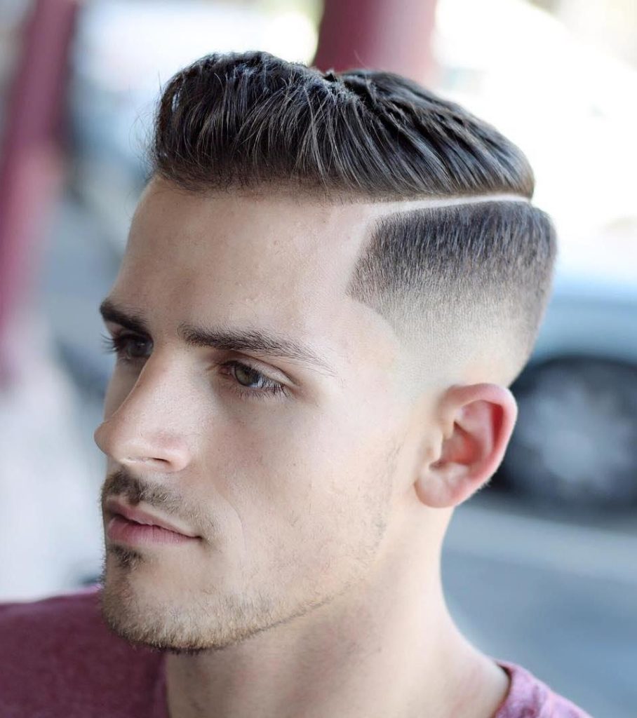 يمكن أن يؤدي الفراق في قصة شعر مقلوبة إلى تغيير مظهر الرجل بشكل جذري. عادة ما يستخدم الرجال الهادفون هذا الخيار.