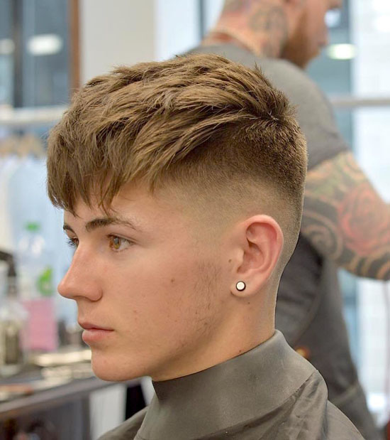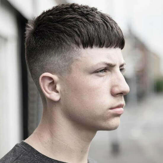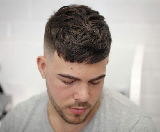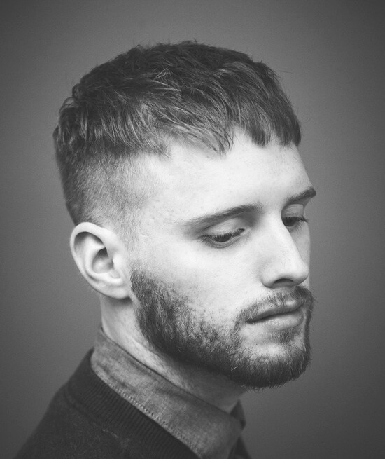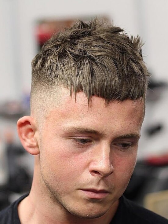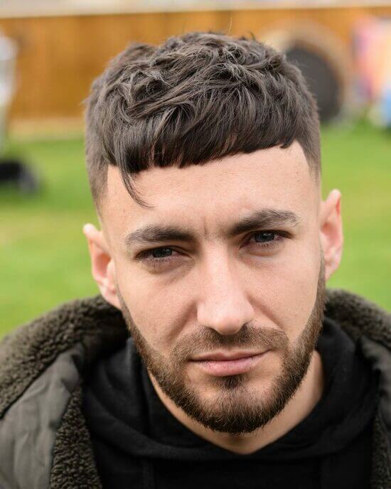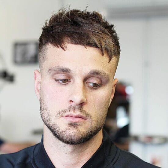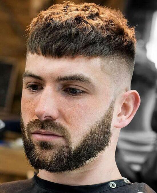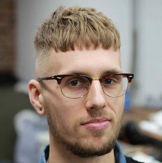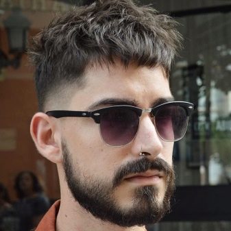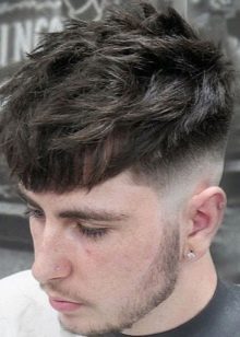 - ناعم. تدخل الانفجارات المشذبة بسلاسة إلى حواف التاج في خطوط ناعمة. شكل كلاسيكي حصيف للرجال بشعر أملس وناعم. الانفجارات المستقيمة مناسبة لأنواع الوجه البيضاوي أو المربع ، وستساعد الانفجارات غير المتكافئة على تلطيف عيوب الوجه الممدود.