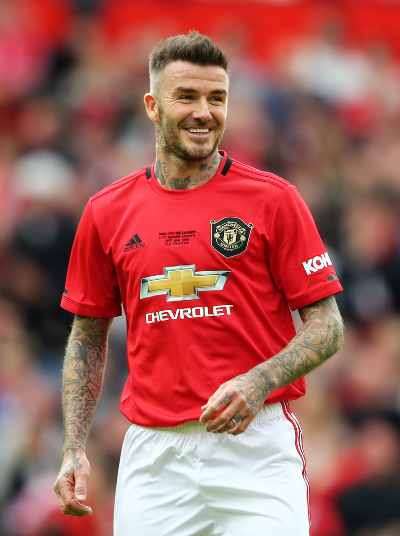 ديفيد بيكهام في ملعب كرة القدم ، فضل قصة الشعر المشهورة جدًا.