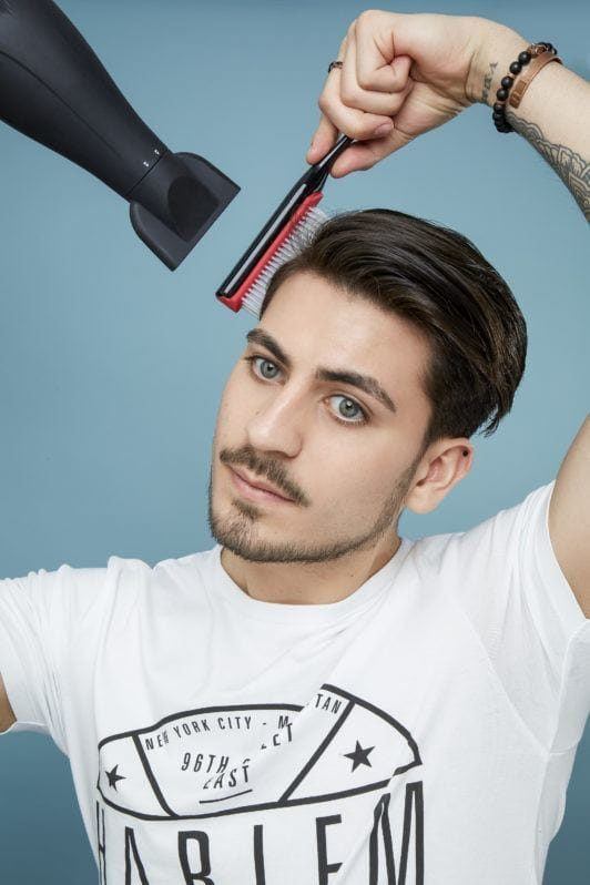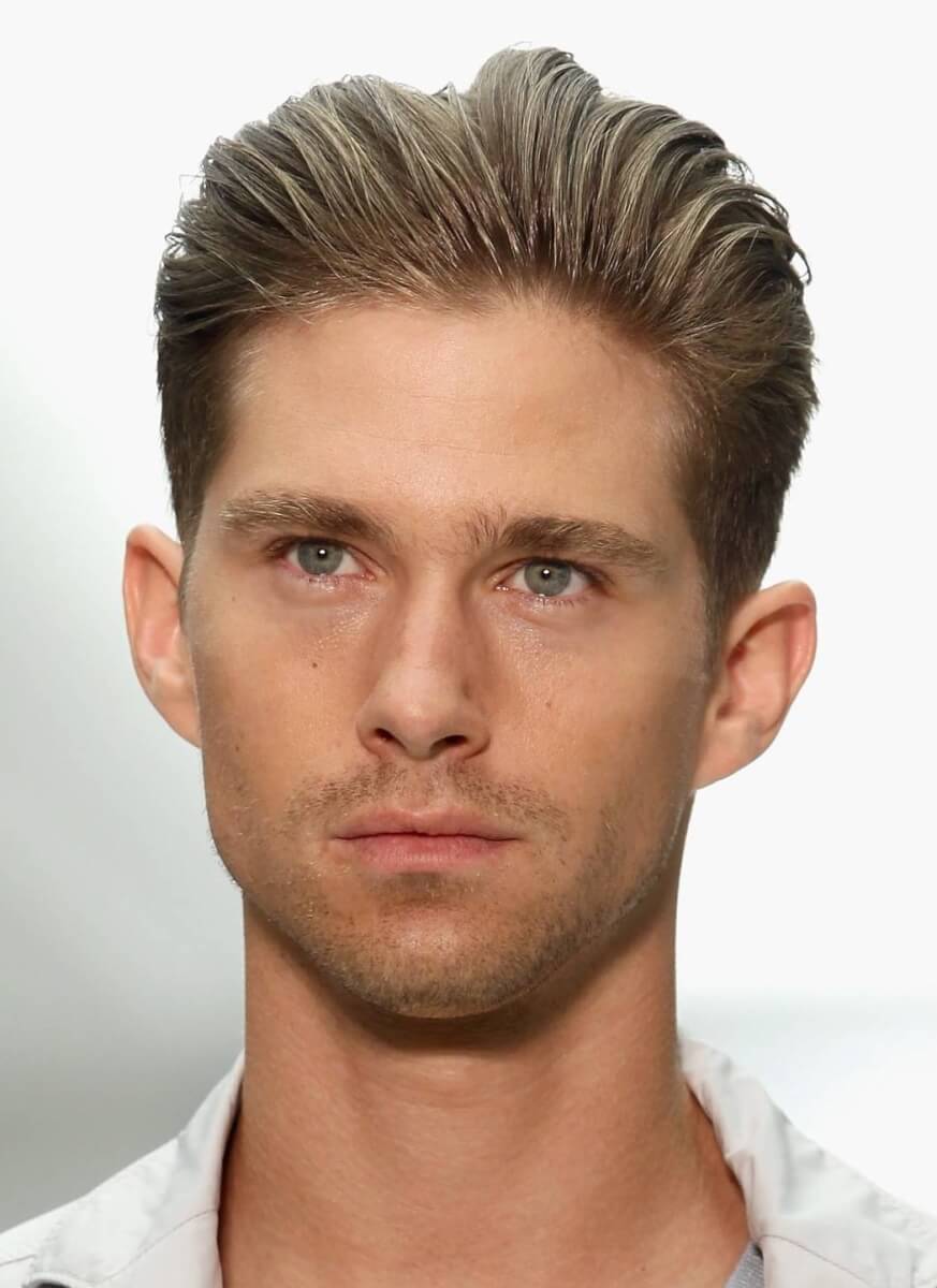 إذا كان للرجل وجه بيضاوي بجبهة جميلة ، فيمكنه ببساطة أن يزيل شعره للخلف - وهذا يكفي لخلق مظهر مثالي ونابض بالحياة.