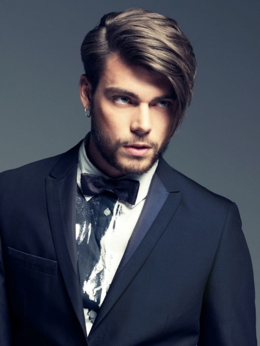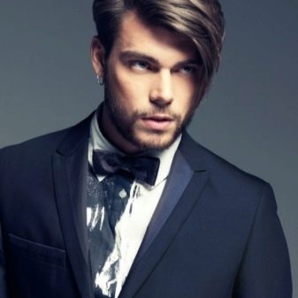 - الرجال المثيرون للإعجاب الذين يحاولون اختيار جميع عناصر القوس لديهم اهتمام دائم. من الأفضل لممثلي الجنس الأقوى أن يتوقفوا عند طول متوسط بانفجار مائل بحيث يتم تمشيطه إلى الجانب.