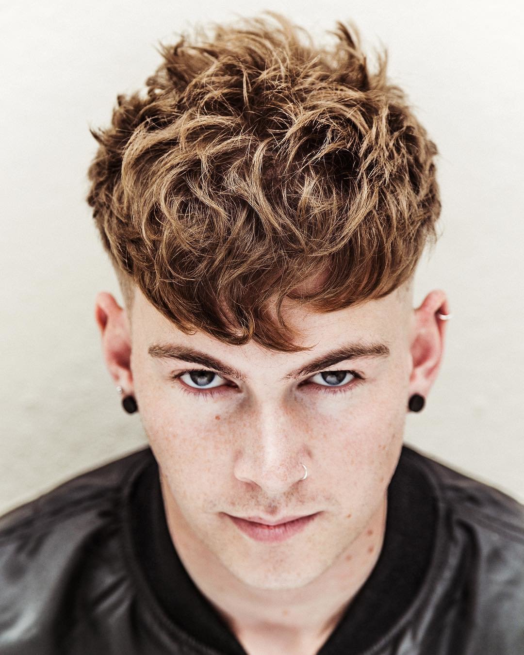 بالنسبة للرجال الذين لديهم جبهته ضخمة ، فإن الانفجارات المقصوصة الموضوعة في الأعلى ستكون حلاً جيدًا.