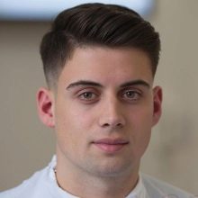فصل دراسي رئيسي حول إنشاء قصة شعر للرجال ذات جوانب قصيرة ، انظر أدناه.