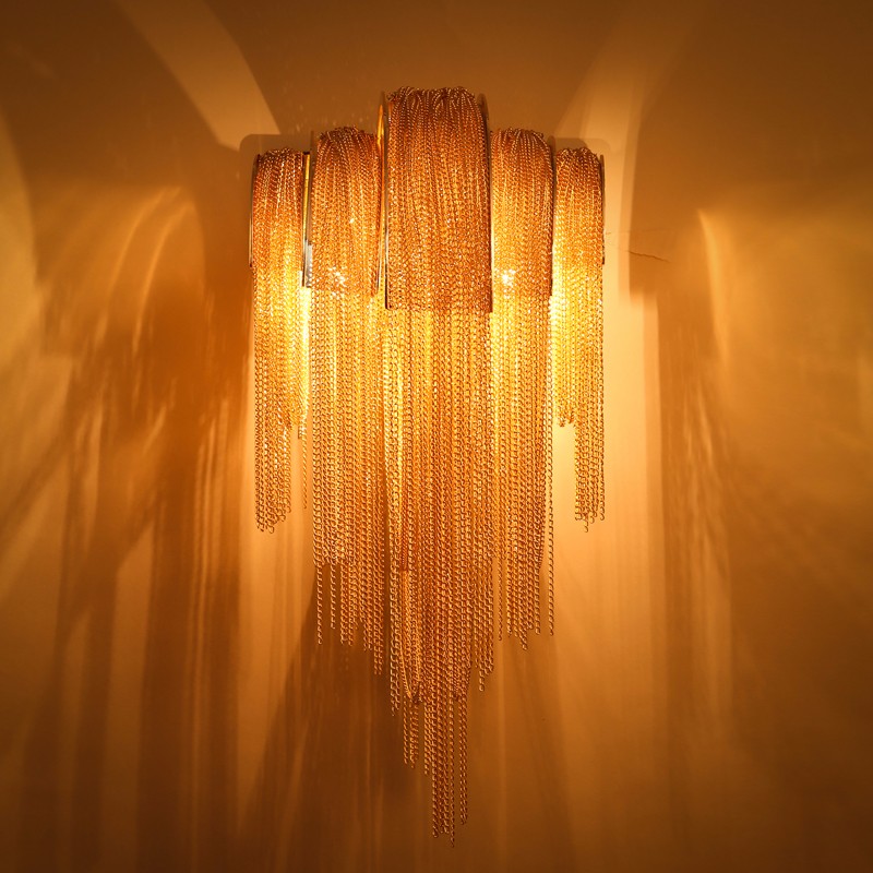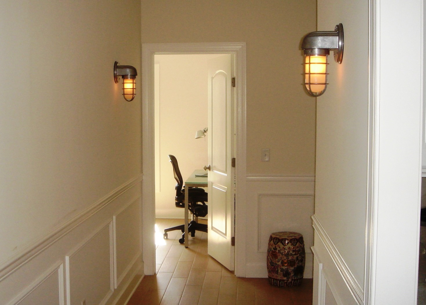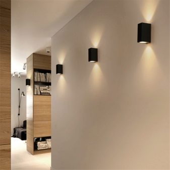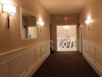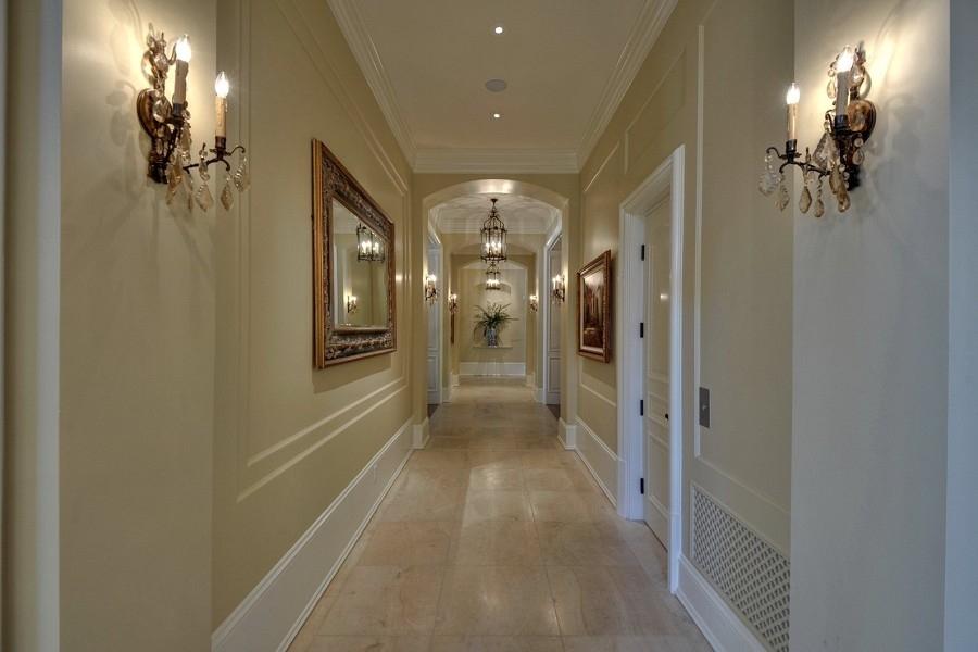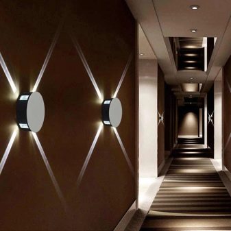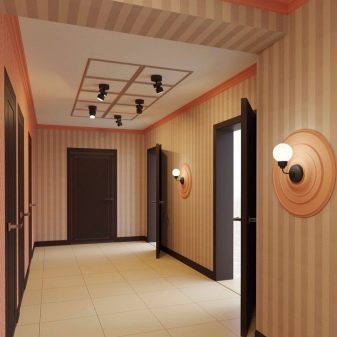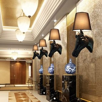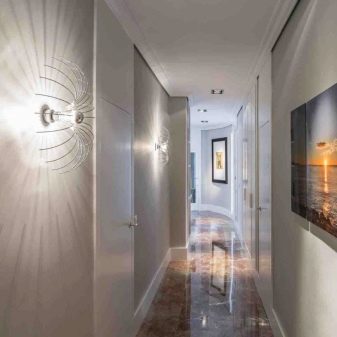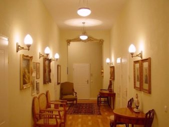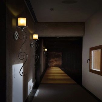 يمكن تركيب العديد من المصابيح على طول جدران الرواق. ومع ذلك ، فإن مثل هذه الحلول لا تبدو جذابة في جميع الأماكن. يوصى بتعليق الشمعدانات في أزواج أو عمل مجموعات صغيرة منها.