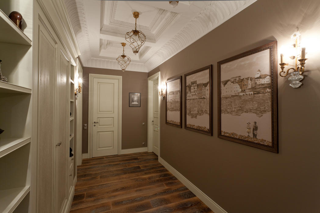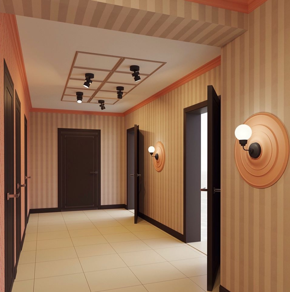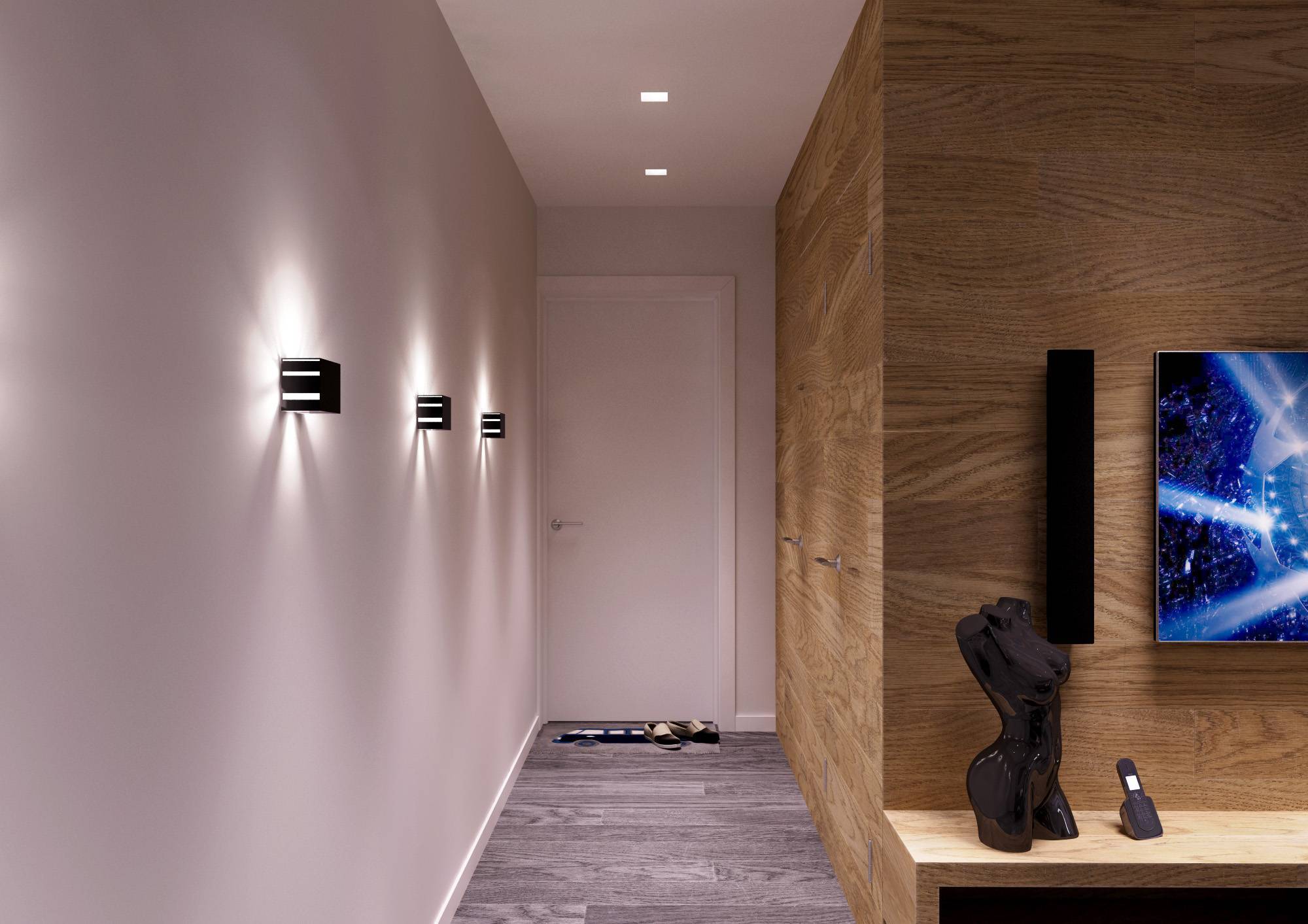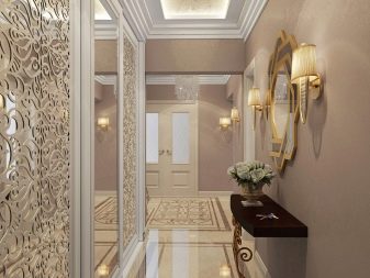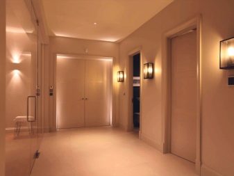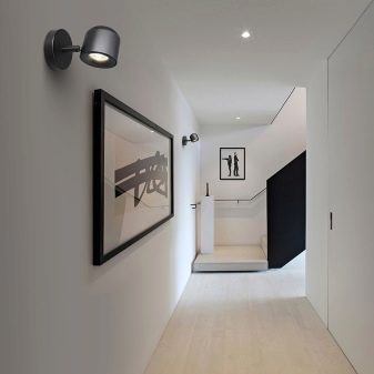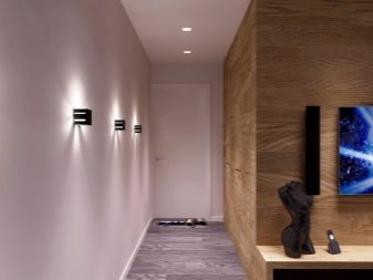 يجب أن يؤكد الضوء على مزايا الممر ، ويسلط الضوء على معالمه المفيدة ، وقطع الأثاث والديكور الجميلة. في المساحات الكبيرة ، من الأفضل تقسيم الإضاءة.بهذه الطريقة يمكنك توفير تكاليف الطاقة.