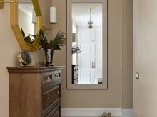 إذا كنت بحاجة إلى اختيار أفضل عنصر لممر ضيق ، فقم بإلقاء نظرة فاحصة على استخدام العديد من الأرفف والمرآة ، لأنه بفضل مساعدتها ستصبح الغرفة أكثر اتساعًا بصريًا.