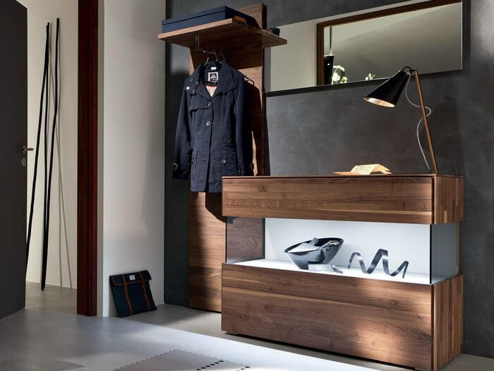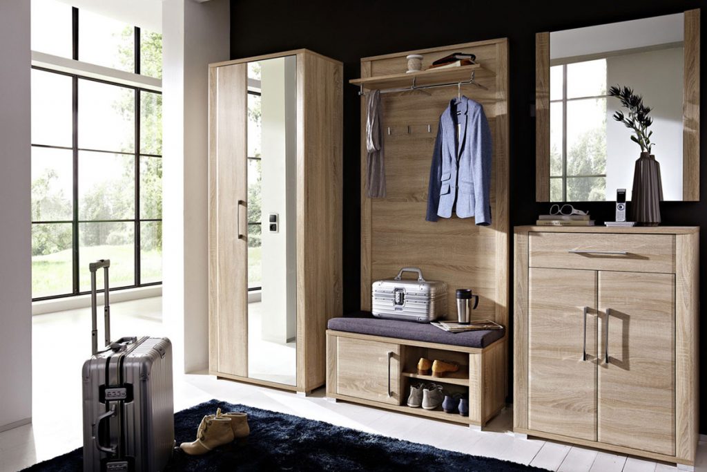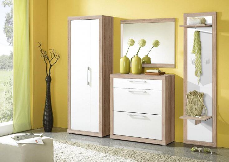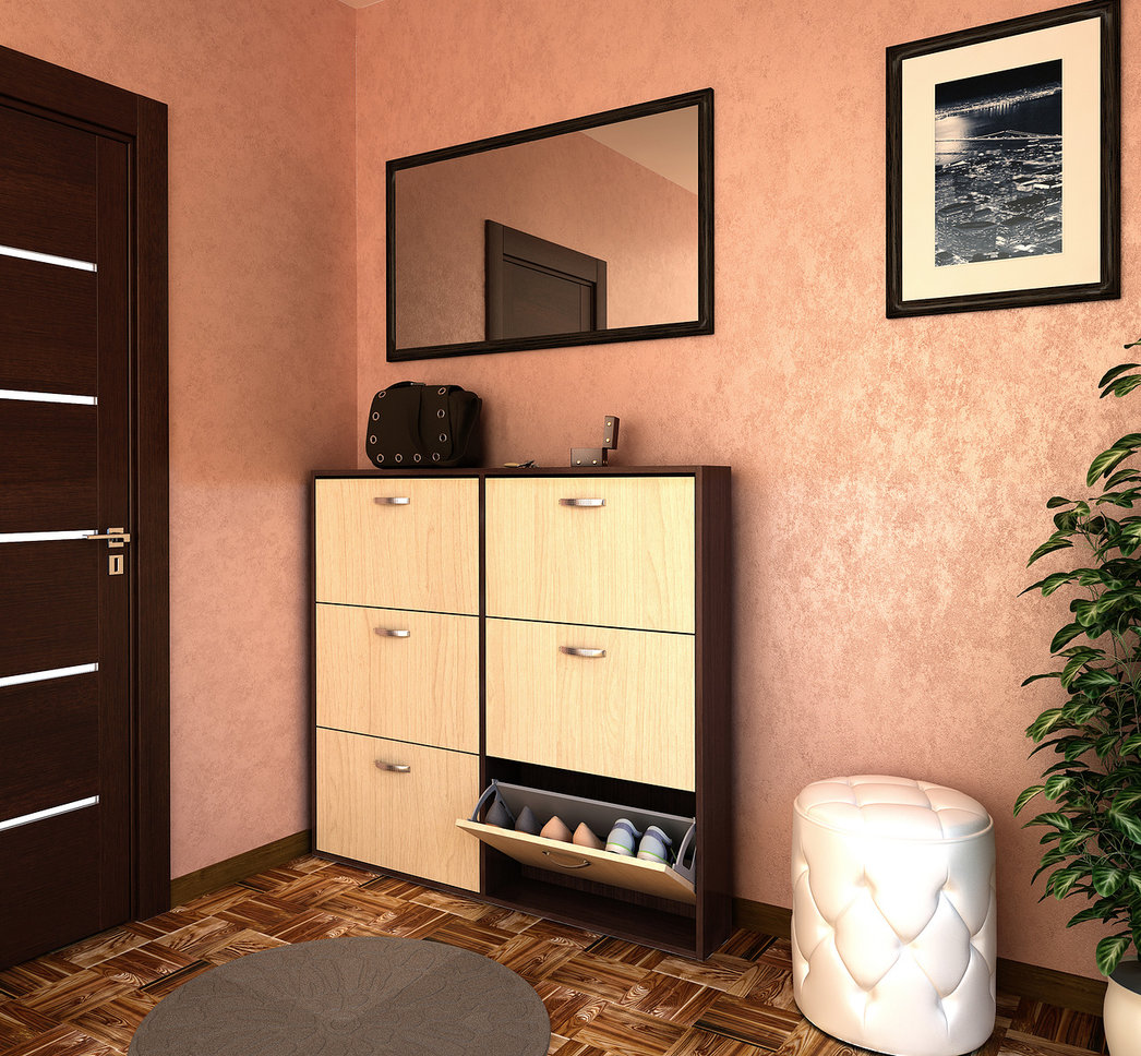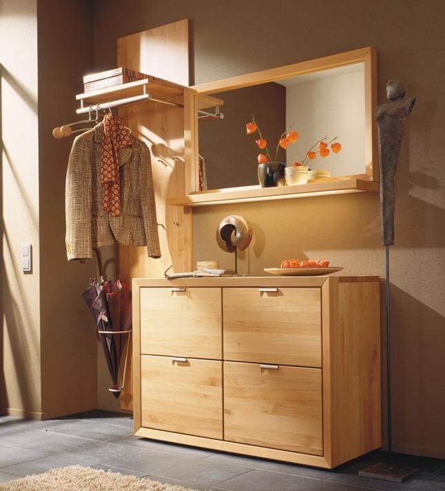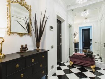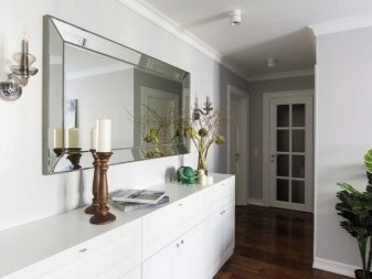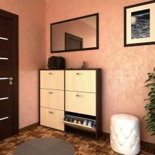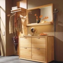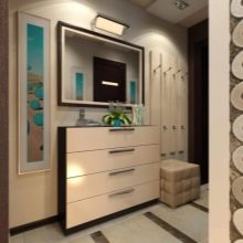 إذا كان الرواق كبيرًا أو به زاوية خالية ، فمن الممكن ترتيب خزانة ذات أدراج بمرآة. يمكنك أن تأخذ نموذجًا أعلى وأطول وأوسع من المعيار المقبول. يمكنك استكمال خزانة الأدراج بطاولة سرير جانبية للأحذية ، والتي سيكون لها مقعد على شكل غطاء. اختياريًا ، يمكنك وضع لوحة بها علاقة أو خزانة مفاتيح.