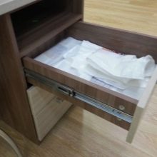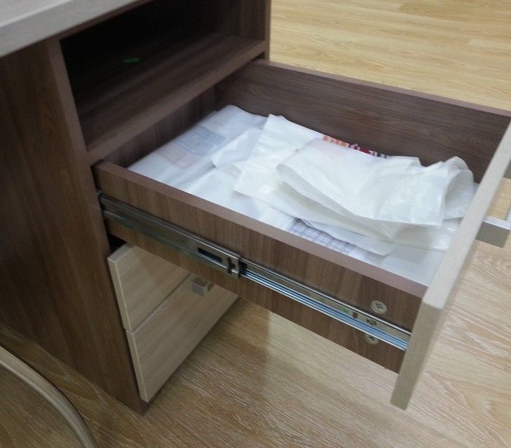 - الخزائن ذات الأدراج المصنوعة من MDF المطلية شائعة جدًا. تتميز بطبقة نهائية لامعة مقاومة للأتربة والأوساخ والرطوبة.