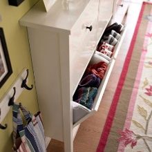 - تعتمد القيمة الوظيفية إلى حد كبير على أبعاد خزانة الأدراج: إذا كان المنتج فسيحًا وضخمًا ، يمكنك وضع أشياء كثيرة فيه ، وحتى استخدامه لتخزين الأحذية ؛ من أجل وضع الأشياء الصغيرة بشكل ملائم ، من الأفضل اختيار نسخة معلقة أو نموذج بأرفف مفتوحة.