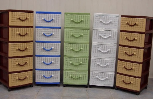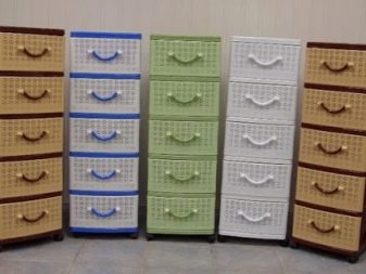- ليس هناك طلب كبير على الخزائن البلاستيكية. عادة مثل هذه النماذج الميزانية. تنقل الواجهات نسيج المنسوجات أو قضبان الخوص.