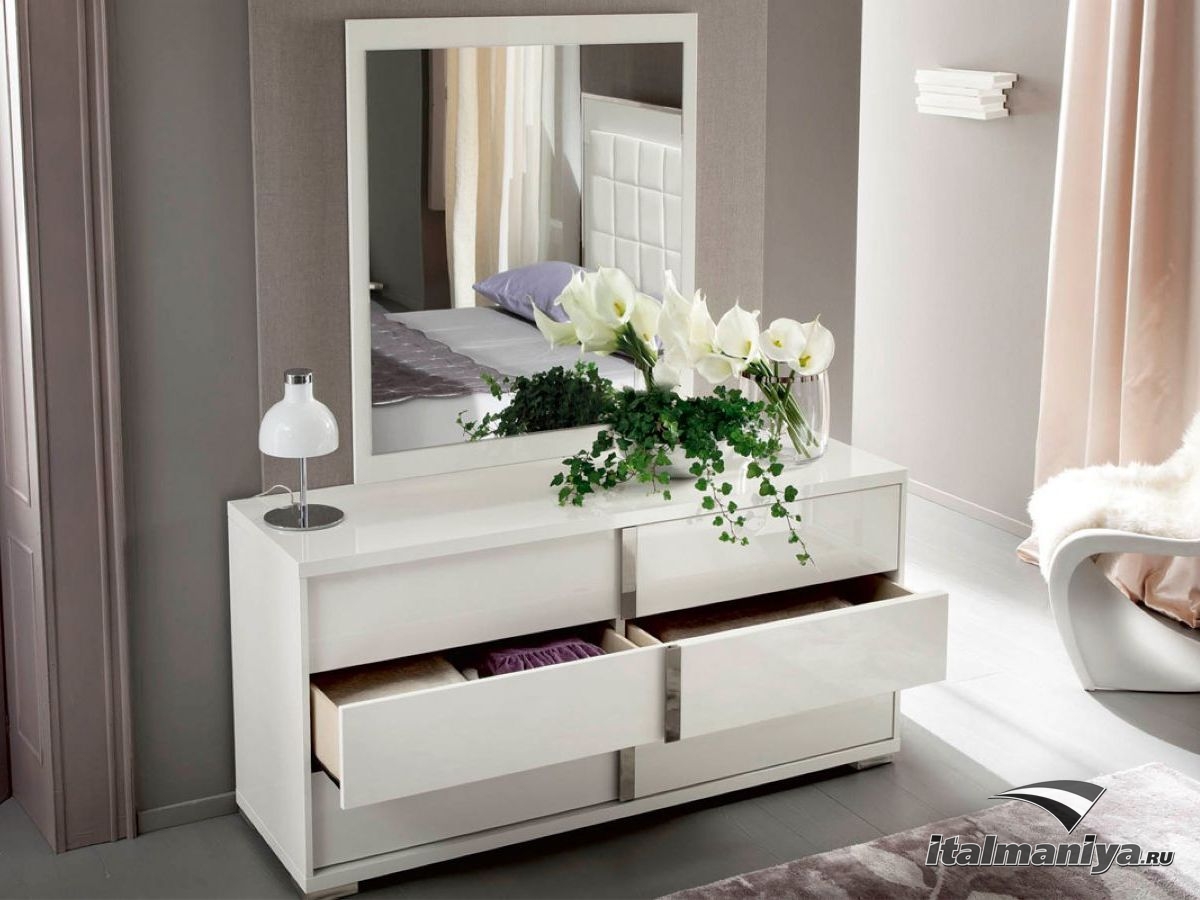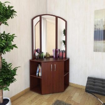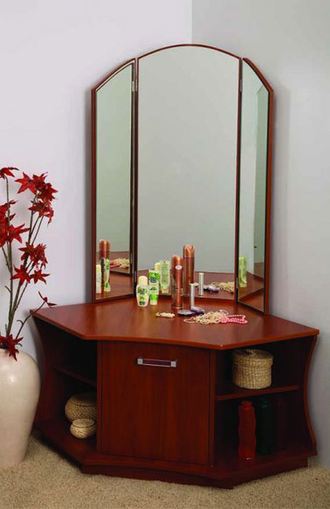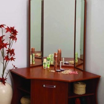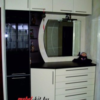 عادة ما تحتوي منضدة الزينة المدمجة مع المرآة على 4 أدراج يمكن استكمالها بمقابض. إذا كنت مهتمًا بالتصميم الباهظ ، فقم بإلقاء نظرة على خزانة الملابس غير المتكافئة.