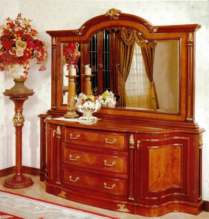 - لا يتم استخدام الخشب الطبيعي كثيرًا كما كان من قبل. الخزائن ذات الأدراج مصنوعة من أنواع خشبية باهظة الثمن. إنها تسمح لك بإعادة التصميم الداخلي بأسلوب كلاسيكي.
