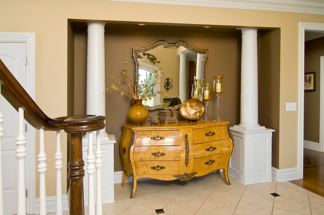 إذا قمت بترتيب الأثاث في الممر بشكل صحيح ، فسيكون من العملي استخدامه. يجب أن تبدو الخزانة ذات الأدراج متناغمة مع أثاث آخر ، إذا كانت موجودة في الردهة.