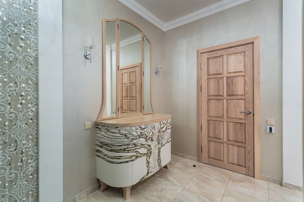 يمكن أن يكون للخزائن ذات المرآة تصميم مختلف ، ويتم تمثيلها بمجموعة متنوعة من القوام والظلال. يبدو الأثاث المصنوع من الخشب الطبيعي أنيقًا للغاية ، على سبيل المثال ، خشب الدردار أو الصنوبر أو الجوز أو البلوط. يمكن تزيين هذا الأثاث بأمان بالزجاج أو المرآة أو الحشوات المعدنية. الشيخوخة الاصطناعية ممكنة.