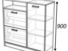 - قليل تحتوي الموديلات (مثل رف الأحذية) على رف واحد فقط مصمم للأحذية التي يصل ارتفاعها إلى 50-55 سم ؛