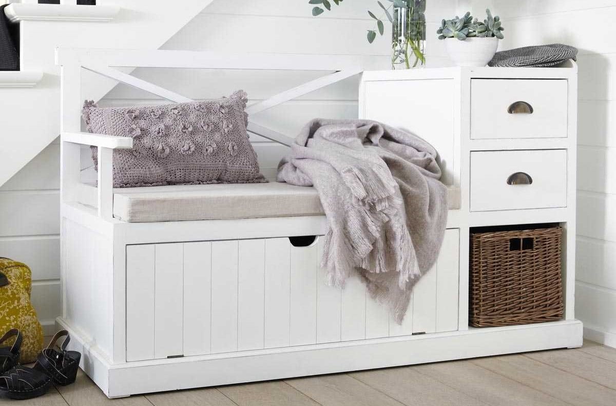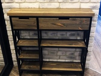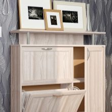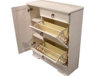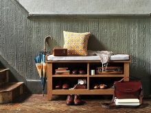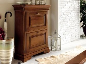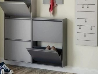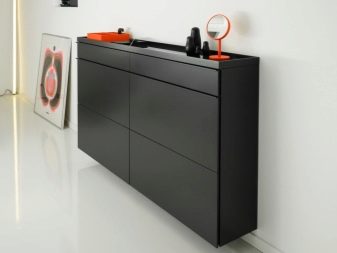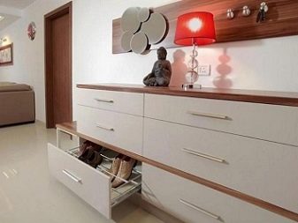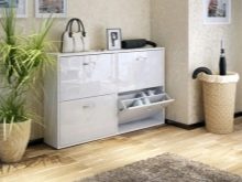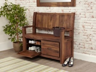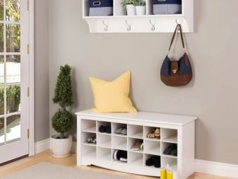 تحتوي بعض الإصدارات على أرفف أو أدراج مغلقة منفصلة ، مما يسمح لك بإبقاء الأحذية وبعض الأشياء الأخرى بعيدًا عن الأنظار. هناك أيضا مقاعد رفوف الأحذية. ارتفاعها صغير نسبيًا ، وغالبًا ما يقتصر على 0.5-0.6 متر ، لأنه بخلاف ذلك سيكون من غير المريح الجلوس.