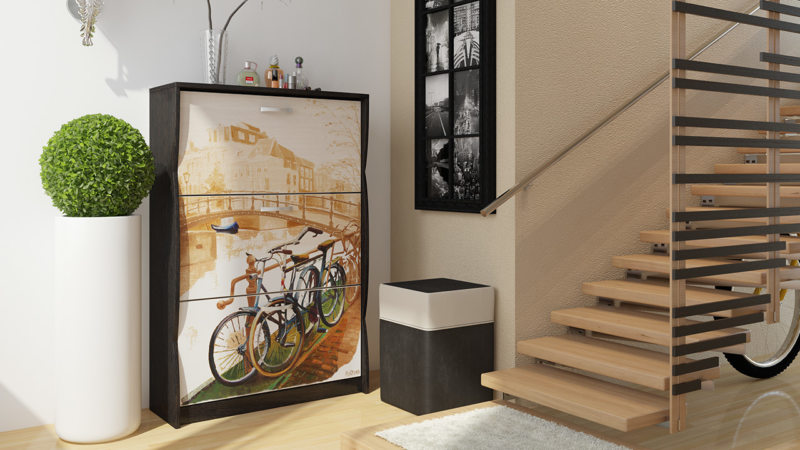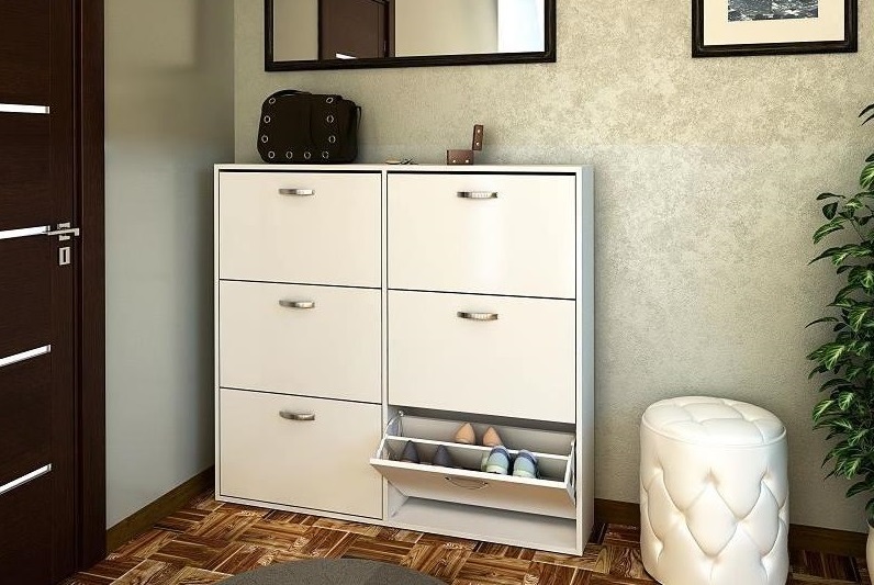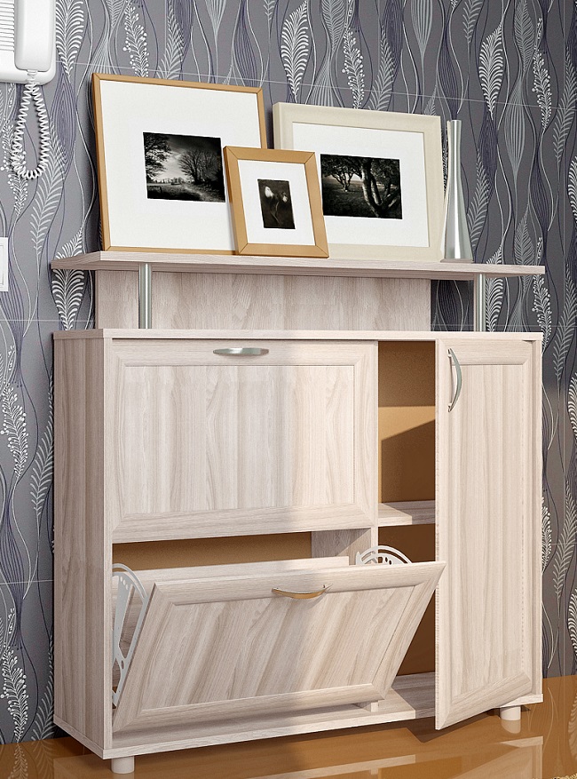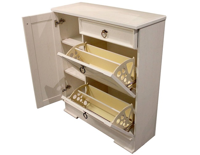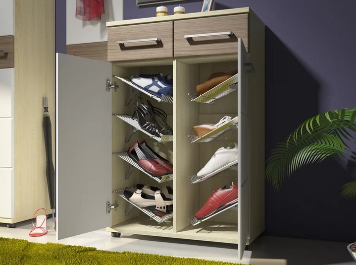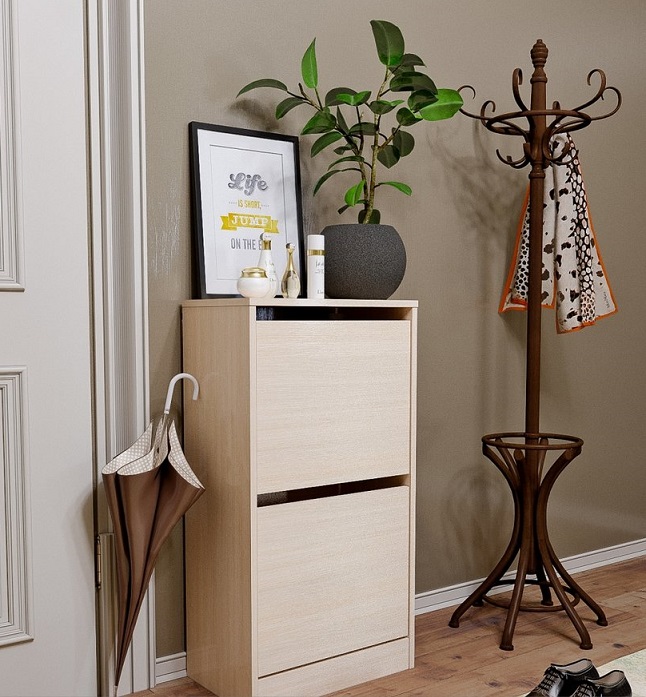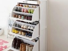 حتى مع حجم متواضع ، فإن رف الأحذية جيد جدًا فسيح ويسمح لك بجمع كل أو تقريبا كل الأحذية المستخدمة في الأسرة. بعض الطرز متعددة الوظائف ، بالإضافة إلى استبدال المقعد أو قاعدة التمثال. بفضل الفتحات الصغيرة الموجودة داخل الخزانة ، حتى عند إغلاقها ، يتم الحفاظ على مستوى جيد من التهوية ، لذلك لا داعي للخوف من الرطوبة والعفن والمشاكل الأخرى.
