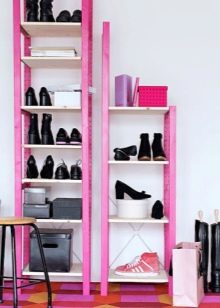يتم اختيار أبعاد رف الأحذية وفقًا لتقديرك. من الجيد جدًا تخزين الأحذية الموسمية في منتجات "رفيعة". فارق بسيط آخر هو الامتثال الصارم لأسلوب معين للغرفة. يجب على عشاق الأصالة الانتباه إلى الأفكار غير العادية. يجب مراعاة التفاصيل الدقيقة الأخرى: