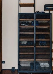لا يحب الجميع التصميم الناعم ، وبالتالي أصبحت المجموعة المعدنية لرفوف الأحذية أكثر انتشارًا. في الأساس ، لديها تصميم مفتوح. تحتوي بعض الإصدارات المحددة على أجزاء مصنوعة من PVC أو اللوح... الاختيار بين هذه الخيارات هو إلى حد كبير مسألة ذوق شخصي.