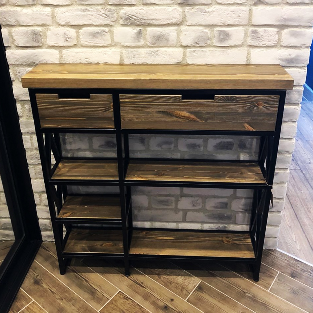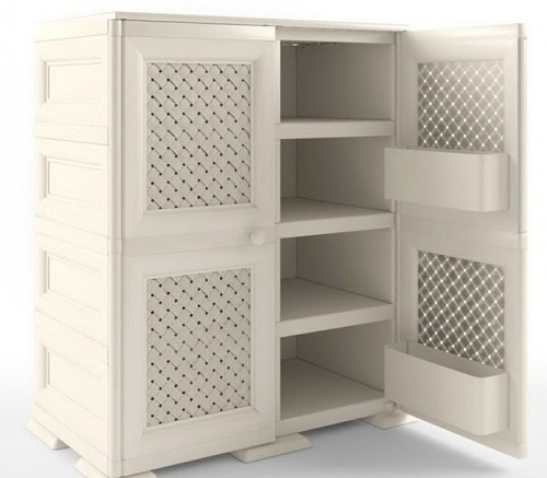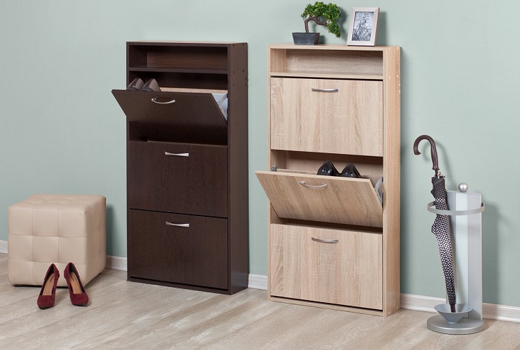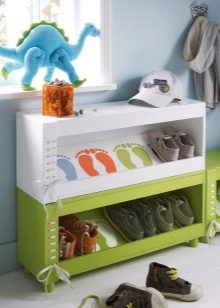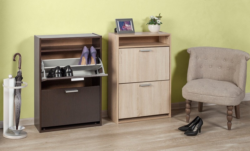 عادة ما يكون لديهم رف واحد فقط ، وهو مناسب لتخزين الأحذية الموسمية. في بعض الأحيان يتم تخصيص مقصورتين. يتم تعويض الإرتفاع المنخفض دائمًا بمقعد مريح. رفوف الأحذية ذات الارتفاع المتوسط منتشرة نسبيًا ؛ قد تحتوي على مقصورات وظيفية إضافية.