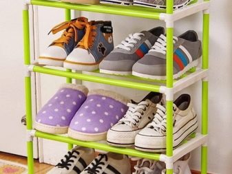 بالإضافة إلى ذلك ، من السهل غسل البلاستيك ، وإصداراته الحديثة متينة للغاية ، لذلك لا يوجد خطر عند استخدامها. في الآونة الأخيرة ، أصبح تخزين الأحذية المصنوع من القماش واسع الانتشار. هذه المادة ليست نموذجية للغاية ، لكن لها آفاق لائقة. الجزء الرئيسي من الهيكل هو إطار معدني قوي. كما أنها مغطاة بنسيج قوي ومقاوم للاهتراء.