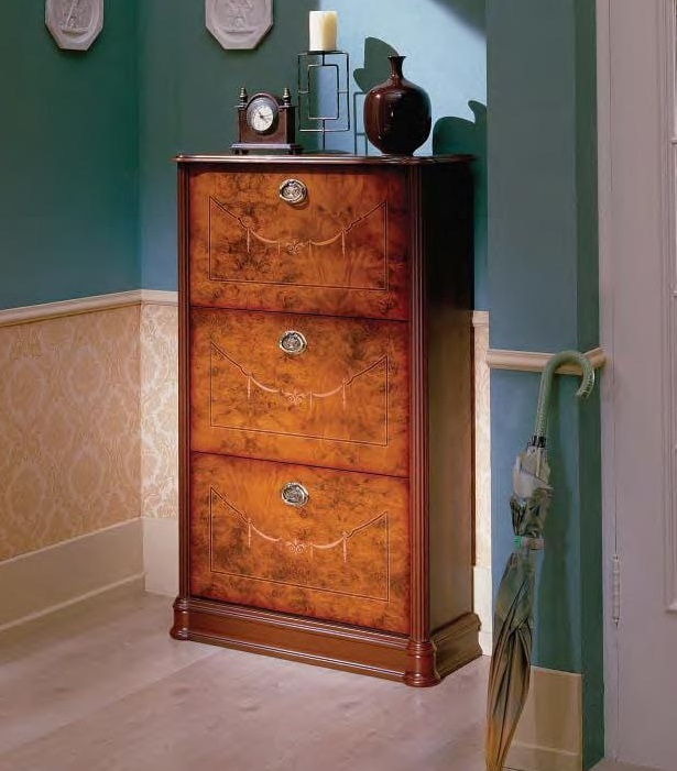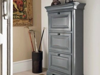 يُطلق على نماذج خزانات الأحذية المغلقة خزانة ملابس ، على الرغم من وجود اسم آخر قيد الاستخدام - خزانة ذات أدراج للأحذية. يمكن أن تختلف هذه المنتجات في مجموعة متنوعة من الأبعاد. تنقسم عادة إلى 3 مستويات رئيسية في الارتفاع:
