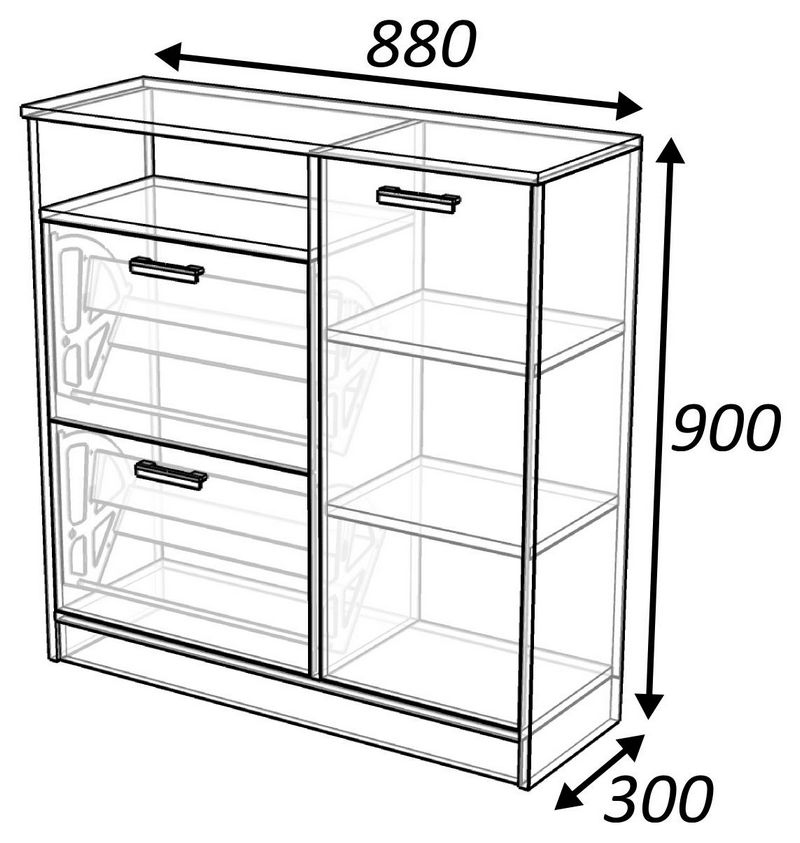 عادة ما يكون العرض 0.6 متر على الأقل والعمق 0.4 متر على الأقل. من الأصعب صنع رف أحذية بوظيفة المقعد عن الرف العادي ، لأنه يجب أن يكون مصممًا للأحمال المتزايدة. يمكن أن تكون المنتجات المدمجة من أنواع مختلفة من الأرفف ، والتي يعتمد اختيارها فقط على قرارات المطورين. في بعض الأحيان توجد نماذج بتنسيق "الرف" أو "الحامل". بدلاً من الرفوف بالمعنى المعتاد ، تستخدم "مجارف" سلكية أو بلاستيكية لتناسب الأحذية ؛ مثل هذا الحل فسيح ، لكنه ليس عمليًا للغاية.