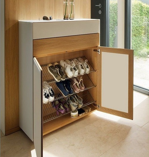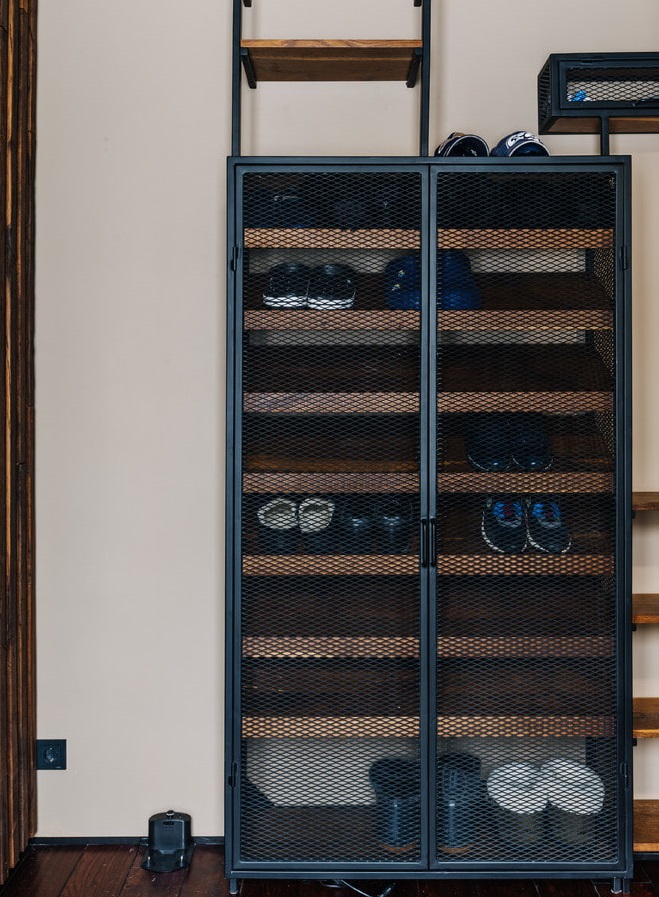 يمكنك أيضًا وضع خزانة أحذية في غرفة الملابس إذا لم يكن هناك مساحة في الردهة.