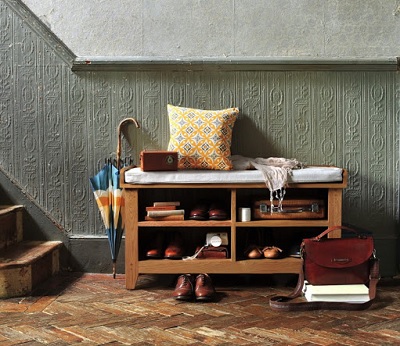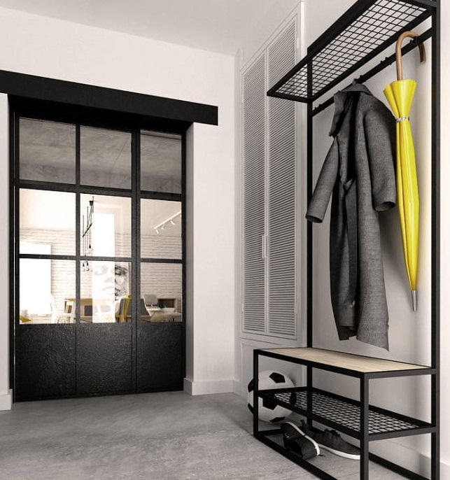 - وهكذا تبدو نسخة أخرى من رف الأحذية ، محاطة بحامل مظلة وكرسي بذراعين أنيق.
