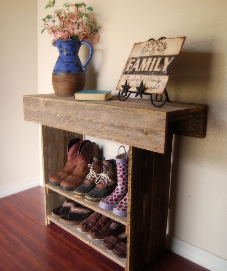 تقليديا ، رفوف الأحذية مصنوعة من الخشب. ليس من الضروري أن تكون هذه أنواع مختلفة من الخشب الصلب - تعمل الألواح الخشبية والألواح الليفية بشكل جيد أيضًا. إنها متينة للغاية ومريحة. بالإضافة إلى ذلك ، فإن تكلفة هذه الهياكل أقل من تكلفة الخشب عالي الجودة. صحيح ، هناك أيضًا ناقص واضح - إذا تم التعامل مع تصنيعها بطريقة غير مهنية ، فلا يمكن للمرء الاعتماد على عمر خدمة طويل وسهولة الاستخدام.